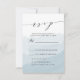 Nossos elegantes cartões de resposta de casamento Nuvem de Aquarela apresentam um fundo de lavagem de aquarela azul com uma fonte de caligrafia manuscrita. Personalize os cartões de RSVP de casamento chiques com os detalhes do seu casamento e opções de jantar.
