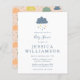 Nuvens de Cuta Orçamentária e Gotas de Chuva no Convite de Chá de fraldas Azul