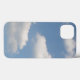 Esta capas de iphone fantástica apresenta uma fotografia de algumas nuvens brancas cúpulas fluffy flutuando livremente através de um belo céu azul.