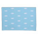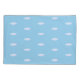 Capa de travesseiro com nuvens fofas em fundo azul claro.