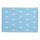 Nuvens negras na caixa do travesseiro de fundo azul-claro.