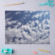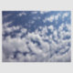 Um banco de nuvens brancas indefinidas se quebra em pequenas peças sábia através do quadro da fotografia vertical. O cobrir da nuvem é mais denso à esquerda e mais esparso à direita, revelando um céu azul profundo que é escuro perto do topo da foto e mais claro perto do fundo. O sol tardio da tarde destaca as bordas direita do cúmulo. Parece que as bolas de algodão rasgadas estão suspensas no ar. Fotografia digital a cores. Copyright © Claire E. Skinner. Todos os direitos reservados.
