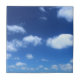Nuvens brancas tranquilas num céu azul. Foto de um azulejo de cerâmica. Decorativo ou útil como um peso de papel. Pensamentos pacíficos e positivos e uma proximidade com a natureza. Várias dimensões disponíveis. Foto original.
