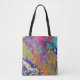 A turquesa brilhante, o azul, o rosa quente, o roxo e o amarelo fazem um design fantástico neste bolsa. Irá com apenas aproximadamente qualquer coisa. O design é adaptado da pintura feita pela alegria Lomenick.