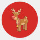 Design de Natal bonito apresenta a rena com um nariz vermelho brilhante sobre um fundo vermelho.