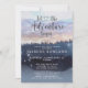 Uma aventura temática sobre a floresta inicia um convite ao chá de fraldas azul com uma bonito paisagem florestal, linha de árvores e estrelas cintilantes. Russo e sereno.