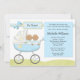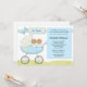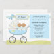 Convide convidados a um chá de fraldas dos gêmeos com este convite azul adorável do chá de fraldas do carrinho de criança. Alguns elementos por www.nitwitcollections.com licenciam #41088. Este cartão azul bonito caracteriza meninos gêmeos do afro-americano em um carrinho de criança.