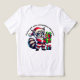 Um guaxinim alegre em uma roupa de Papai noel segura alegremente presentes coloridos, espalhando humor festivo e prazer. Perfeito para aqueles que adoram roupa de Natal divertido.