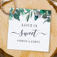 Esta etiqueta de presente “O Amor é Doce” com ilustração botânica de eucalipto macio é o toque final perfeito para lembranças de casamento e doces. O design atemporal de folhagem verde adiciona um toque elegante e romântico e combina perfeitamente com papelaria e decoração de casamento com eucalipto. Ideal para anexar a sacos de lembranças, caixas ou displays de sobremesas, esta etiqueta é um detalhe charmoso que seus convidados vão adorar.