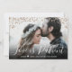 Modelo de anúncio de evento adiado - cartão de mudança de data com foto. Cartão moderno de "Unsave the Date" com foto horizontal. Apresenta um design elegante de tipografia manuscrita com o texto "O amor é paciente" e uma foto horizontal que você pode alterar facilmente, com sobreposição de confetes brilhantes no topo. No verso, fundo de metal polido em rosa dourado, com sobreposição de confetes brilhantes em rosa dourado e modelo de texto com pequeno coração, que você pode personalizar. #3339 Se precisar de ajuda ou itens correspondentes, entre em contato comigo.