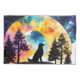 Cachorro do Retriever de Aquarelas: Silhueta contra lua Cheio, Colorida com nuvens e árvores, Arte Gerada por Ai por minx267