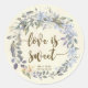 Um belo adesivo de casamento/chá de panela com uma aquarela azul, design de coroa floral, colocado sobre fundo de marfim e com a frase tipográfica "o amor é doce" para usar nos seus favores/papelaria etc. Fácil de editar ou excluir o campo de texto do nome e data com seus nomes/mensagens para atender às suas necessidades pessoais. Perfeito para casamentos/chás/festas, etc. a qualquer momento do ano! Papel de carta e outros itens disponíveis nesta coleção bonito.