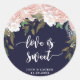 Um belo amor é um doce adesivo com uma cor d'água, cor rosa pálido, design floral, colocado sobre um fundo marinho e "o amor é doce" em letras de pincel. Fácil de alterar ou excluir o campo de texto de nome e data disponível para atender às suas necessidades pessoais. Perfeito para casamentos e chás/eventos em qualquer época do ano! Visite meu compro para ver mais itens nesta coleção. Alguns gráficos usados em TwigsAndTwineArt.com