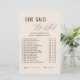 Celebrar a noiva a ser com o nosso encantador Chá de panela Que Ele Disse Que Ela Disse Jogo! Os convidados gostarão de adivinhar quem disse ou fez o quê com estas perguntas divertidas e perspicazes sobre o casal feliz. Apresentando belos designs de flor silvestre, este jogo é a adição perfeita às suas festividades de chá de panela. É uma maneira deliciosa de aprender mais sobre noiva e noivo enquanto cria momentos memoráveis. Que a diversão comece e veja quem sabe melhor o casal!