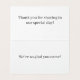 Design apresenta a imagem de uma rosa rosa rosa no cheio como fundo para a forma que mostra o nome do convidado. Os nomes da noiva e do noivo são exibidos em branco no fundo, à direita. O dentro apresenta duas mensagens personalizáveis de obrigados para o seu convidado. Projetado para coordenar com o "Love is in Bloom Wedding Suite."