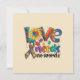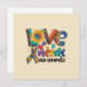 Partilhe a compaixão e o apoio com este cartão de reconhecimento do autismo "Love Needs No Words", com girassol vibrante, coração e quebra-cabeça coloridos. Perfeito para mães, professores, defensores e qualquer um que comemore a aceitação do autismo.