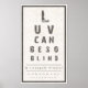 Como um gráfico ocular, esta poster afirma que o Amor pode ser tão cego e blissmo. Não sue as coisas pequenas. Uma adição divertida a qualquer quarto.