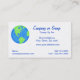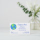 Promover o Dia da Terra, respeitando e amando o planeta. Este cartão de visita é excelente para um negócio ambiental, grupo ou para uso pessoal para mostrar seu apoio com este design de arte eco-amigável. Utilizar para promover e espalhar a palavra ao reciclar e para manter a terra bonita e livre da poluição. Este cartão de visita é fácil de personalizar. Num dos lados do cartão, todas as palavras "Ame e Respeite-o" em cima do planeta Terra, e as palavras "está em nossas mãos" e "seu futuro" abaixo da Terra podem ser mudadas para suas próprias palavras. Do outro lado, o mundo terrestre está com todas as suas informações de contato para a sua empresa. O globo terrestre verde e azul é uma arte original de Phyllis Dobbs e está sobre um fundo branco. Esta cartão de visita é excelente de promover o respeito pela Terra e mantê-la bonita. Esta arte está disponível em outros itens e com outras cores de fundo nesta loja.