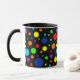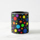 Um teste padrão corajoso do ponto com os pontos coloridos desiguais no preto.