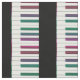 O arco-íris fecha o tecido do teclado de piano. O material musical toma em um significado novo inteiro. Chaves pretas coloridas contra as chaves brancas em um fundo preto. Um grande presente para seu jogador, músico ou melómano favorito de piano.