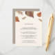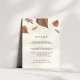 Projetado para coordenar com nossa coleção de casamento do Autumn Leaves, este elegante cartão de informação botânica do outono apresenta uma borda superior de folhas aquáticas em cores do outono, colocando seus principais detalhes de casamento, como acomodações de hotel, informações de recepção bem-vindas, site e muito mais. Adicione seu texto personalizado usando os campos fornecidos e use a função Personalizar para ajustar fontes, tamanhos e espaçamento.