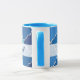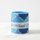 Esta caneca da campainha tem tons azuis em um teste padrão de mosaico em um fundo branco, uma listra branca semitransparent com a expressão árabe do aniversário: "Eid Milaad Saeed!" Esta caneca é um artigo elegante para sua bebida favorita e um grande presente para alguém especial. Você pode igualmente combiná-la com os cartões, as etiquetas, e os selos de www.zazzle.com/Artcor7Cards, o papel de envolvimento de www.zazzle.com/Artcor7GiftsPaper, e uma variedade de artigos do presente assim como os decorativos e os pessoais de www.zazzle.com/Artcor7.