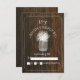 Um convite rústico e elegante da r.s.v.p. do casamento, com a ilustração de um jarro de pedras do hálito do bebê sobre um fundo inspirado em madeira de celeiro.