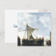 O Barco de Passagem. Aelbert Cuyp. Paisagem clássica. O mar está calmo. No centro está um grande navio à vela. Há pequenos barcos à vela no fundo. Há nuvens no céu. Reprodução de famosas imagens de arte no dominio público.