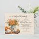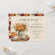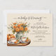 Este encantador convite apresenta um desenho aquoso de copos de café em uma mesa com flores mães em um vaso e uma abóbora. As palavras "um bebê está a criar" são escritas numa letra moderna. É a maneira perfeita de convidar seus amigos e família para celebrar a futura mãe e seu amor pelo café.
