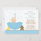 Polvilhe a mamã para ser com este bebê adorável polvilham o convite para um menino. Este azul polvilha características do convite um bebê bonito em um guarda-chuva com os pingos de chuva e um urso de ursinho. Alguns elementos JDDigiDesign