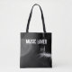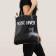 Adicione um toque pessoal a esta sacola da música que caracteriza um jogador gravado de vinil.