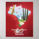Poster de viagens brasileiro que apresenta a paisagem e a vida selvagem da nação em uma bela mão criou a impressão de arte.