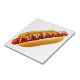 Cachorro quente de SlipperyJoe enfiado pão mole pão amarelo vibrante mustarda amarela condimento picante carne grelhada picada em espiral marca de grelhas comida aspecto charrado aspecto culinário delicioso delicioso delícia marcas de grelhas visíveis orgulho gay presentes LGBTQIA CHURRASCO artístico de verão vibe zigzag padrão