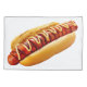 Cachorro quente de SlipperyJoe enfiado pão mole pão amarelo vibrante mustarda amarela condimento picante carne grelhada picada em espiral marca de grelhas comida aspecto charrado aspecto culinário delicioso delicioso delícia marcas de grelhas visíveis orgulho gay presentes LGBTQIA CHURRASCO artístico de verão vibe zigzag padrão