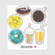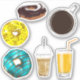 Alguns dos meus desenhos feitos à mão estão disponíveis como adesivos. Rosquinhas, café frio, café quente, suco. Aproveite este volume 1.