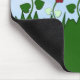 As flores doces com as pétalas coração-dadas forma em cor-de-rosa, no vermelho e nas cores do arco-íris estão em um campo verde-claro contra um céu azul enchido com as nuvens macias neste mousepad bonito, floral. De minha imagem digital-criada original.