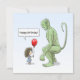 A garotinha diz feliz aniversário para sua amiga o grande goblin verde.