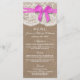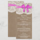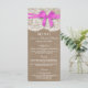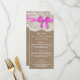 A coleção de arcos rosa rústica é um design com um adorável fundo de efeito de burlap rusticado com um romântico de efeito de renda branca vintage e um arco rosa espantoso. Esses menus podem ser personalizados para sua ocasião especial e fariam a modelo perfeita para menus de casamento, menus de chá de panela, menus de festa de noivado, menus de festa de aniversário e muito, muito mais. *Observe que o Zazzle só vende produtos impressos para que este item não tenha nenhum material real de burlap, rendas ou fita/ arco.