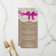 A coleção de arcos rosa rústica é um design com um adorável fundo de efeito de burlap rusticado com um romântico de efeito de renda branca vintage e um arco rosa espantoso. Esses menus podem ser personalizados para sua ocasião especial e fariam a modelo perfeita para menus de casamento, menus de chá de panela, menus de festa de noivado, menus de festa de aniversário e muito, muito mais. *Observe que o Zazzle só vende produtos impressos para que este item não tenha nenhum material real de burlap, rendas ou fita/ arco.