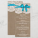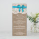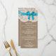 A coleção de casamento do arco azul rústico é um design impressionante que apresenta um adorável fundo de efeito de burvolta rústica com um romântico efeito de renda branca vintage e um espantoso arco azul. Esses menus podem ser personalizados para sua ocasião especial e fariam a modelo perfeita para menus de casamento, menus de chá de panela, menus de festa de noivado, menus de festa de aniversário e muito, muito mais. *Observe que o Zazzle só vende produtos impressos para que este item não tenha nenhum material real de burlap, rendas ou fita/ arco.