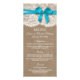 A coleção de casamento do arco azul rústico é um design impressionante que apresenta um adorável fundo de efeito de burvolta rústica com um romântico efeito de renda branca vintage e um espantoso arco azul. Esses menus podem ser personalizados para sua ocasião especial e fariam a modelo perfeita para menus de casamento, menus de chá de panela, menus de festa de noivado, menus de festa de aniversário e muito, muito mais. *Observe que o Zazzle só vende produtos impressos para que este item não tenha nenhum material real de burlap, rendas ou fita/ arco.