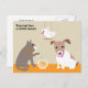 Cartão bonito para o negócio de assento do animal de estimação. O gato está alimentando um peixe dourado e um cão senta-se próximo. Um cockatoo está em um balanço acima.