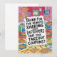 Celebre seu superastro de compartilhamento de lanches com este divertido e saboroso Cartão de Apreciação ao Colega de Quarto Foodie! Perfeito para o colega de quarto que está sempre pedindo comida para viagem, cozinhando algo delicioso ou furtivamente dando batatas fritas extras, este cartão diz: “Obrigado por sempre compartilhar seus restos (e seus cupons de comida para viagem).” Com ilustrações divertidas de comida e uma mensagem calorosa e alegre, é a maneira perfeita de mostrar apreço pelo colega de quarto que alimenta seu corpo e alma.