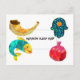 O cartão judaico de ano novo, com ano novo judaico feliz de Shana Tova- dos "peixes "do "rimon" de "Hamsa"
