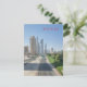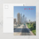 Uma bela vista de uma movimentada estrada e prédios em Dubai impressos em um cartão-postal.