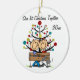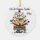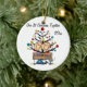 Um ornamento cerâmico redondo bonito da lembrança caracteriza o primeiro Natal de um casal junto! Adicione facilmente sua escolha do texto e da data ao ano em curso nesta figura bonito casal da vara com gato e com o ornamento do design da árvore de Natal. Faz uma grande ideia do presente!