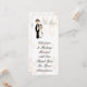 Este marcador de agradecimento de casamento doce tem um fundo branco com sinos de casamento rosa macio e apresenta uma noiva e um noivo. O design foi projetado por Sketchart26 usando arte de Delightful Doodles.