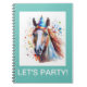 Vamos festeiro amante notebook. Um lindo cavalo aquarela no notebook azul vai ajudá-lo a acompanhar as tarefas e inspirar seu escrevendo.