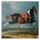 Reelaboração elegante e clássica de pintura de Johann George Hamilton) era um pintor escocês de vida estática e animal., 18. Century .Azul vibrante preto,castanho,branco,cores vermelhas.