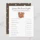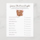Cartão de jogo de chá de fraldas feminino com tema de urso bonito, com ilustrações de um filhote rolando no chão com arco e corações cor-de-rosa. Os textos são editáveis. Um jogo perfeito para jogar durante o chá. Enumera o essencial do bebê e aos hóspedes para adivinhar o preço. Quem quer que adivinhe o preço mais próximo ganha!